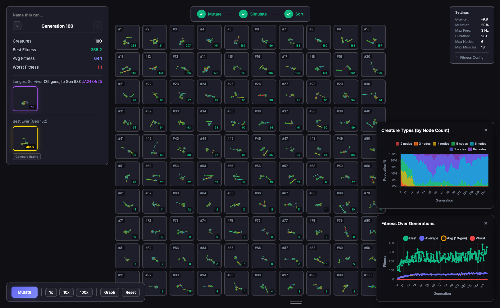 Finally, we simulate the new generation and measure their fitness. Repeat.