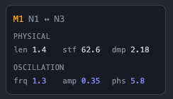 Muscles have a rest length (natural length), stiffness (how hard it pulls), and damping (how quickly it settles):
